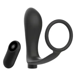 Addicted Toys anilla pene con plug anal control remoto negro recargable: estimulación simultánea con plug anal vibrador, anillo súper elástico y control remoto. Silicona médica premium, recargable y ergonómico. Placer y firmeza, solo o en pareja, sin lÃmites.