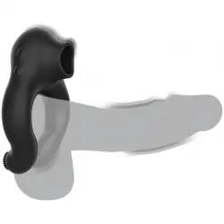 Armony Anillo Vibrador Silicona: Placer Dual en Negro-Dorado