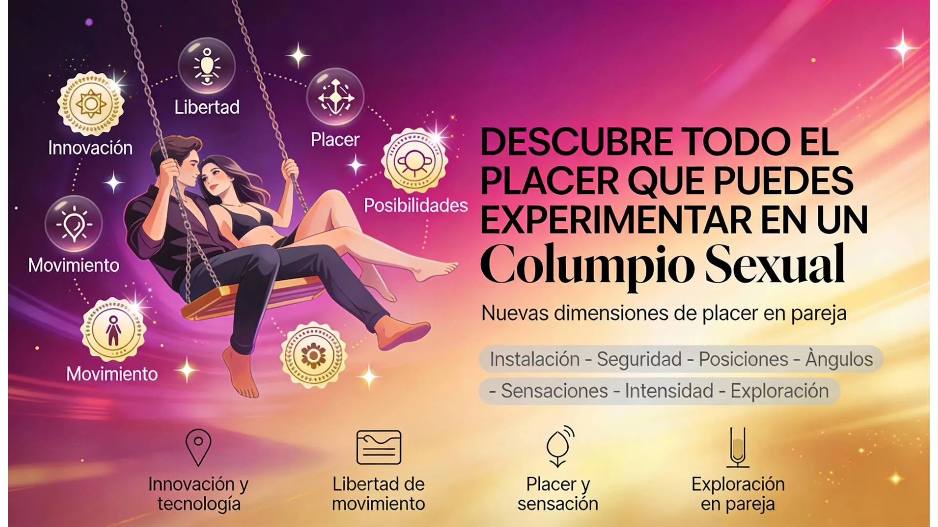 Los momentos íntimos y apasionados darán un giro de 180° con los Columpios Sexuales, junto a las diferentes técnicas, movimientos, y posiciones que puedes emplear, para poder darle rienda suelta a tus deseos más ocultos en el campo de la sexualidad.