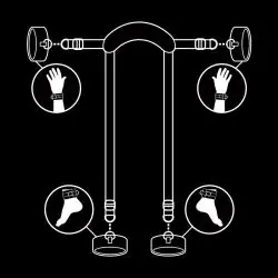 Posición master con 4 esposas Fetish Submissive: facilita la postura “profesor” con piernas elevadas para penetración intensa y sumisión total. Sistema resistente, seguro y fácil de usar en cualquier fantasía bondage.