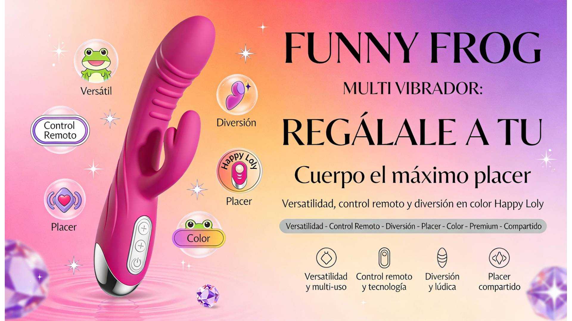 Regálale a tu cuerpo el máximo placer con el nuevo Funny Frog: Multi Vibrador a control remoto de color Happy Loly